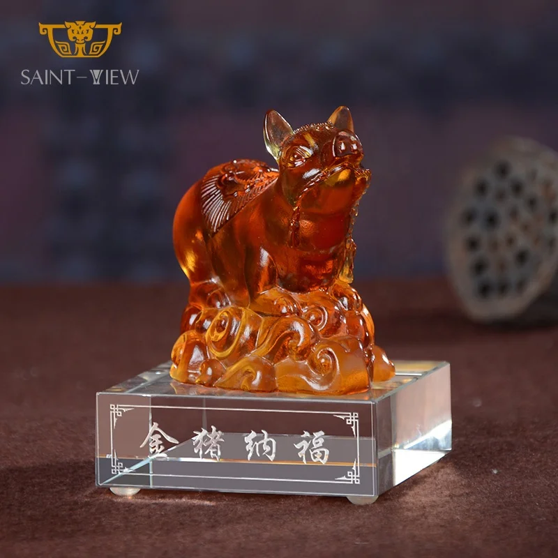 SAINT-VIEW 2021 New Design Liuli Crystal Art Ox Statue Auspicious Company Gift