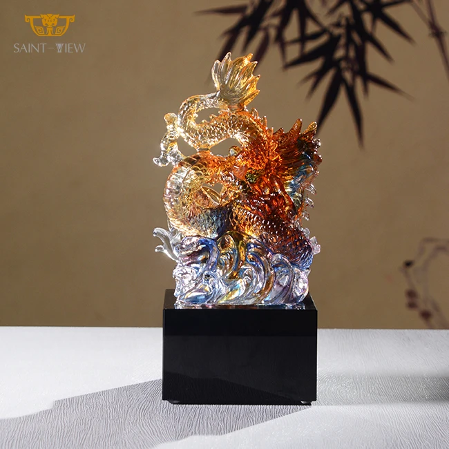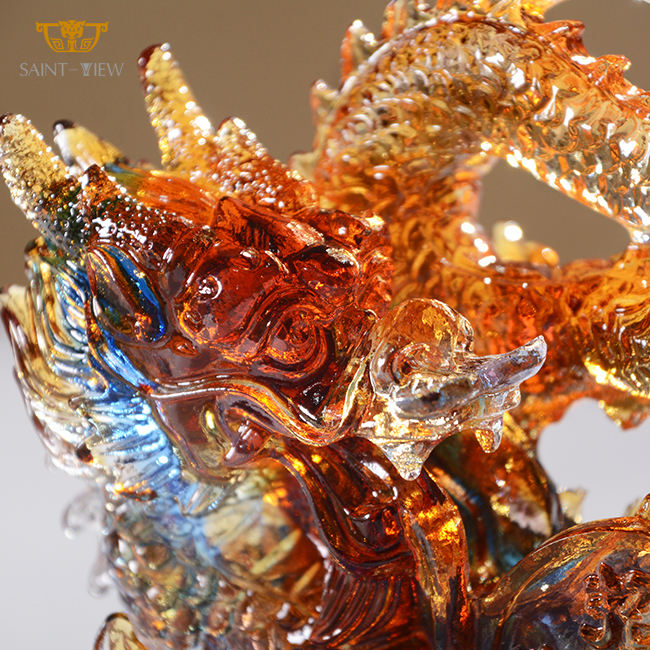 Chinese Traditional Crystal Dragon Sculpture Fengshui Home Decor Lucky Feng Shui Mascot Craft