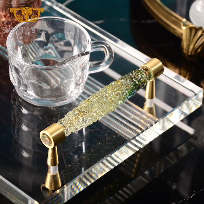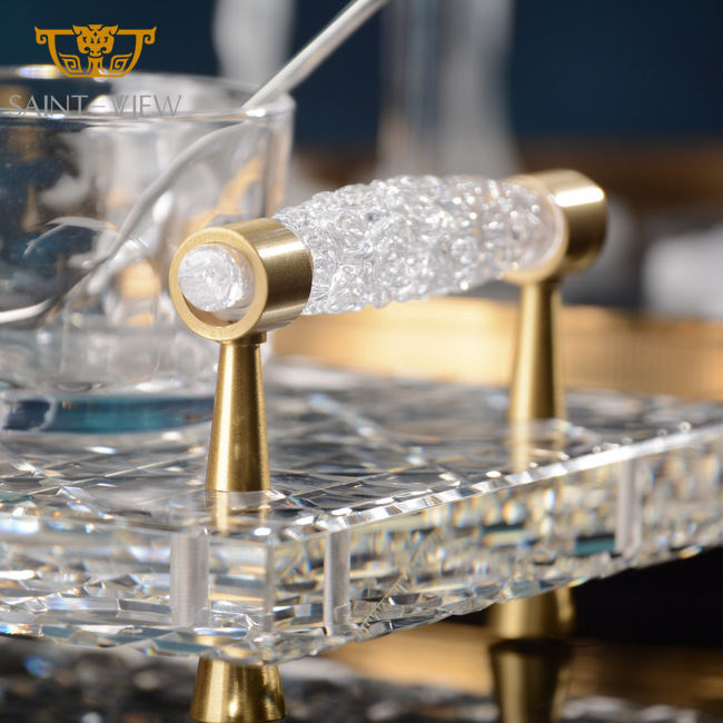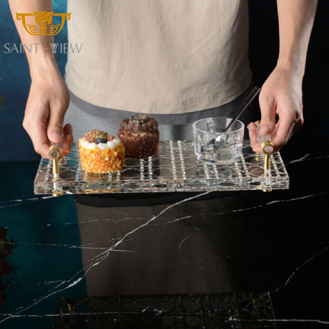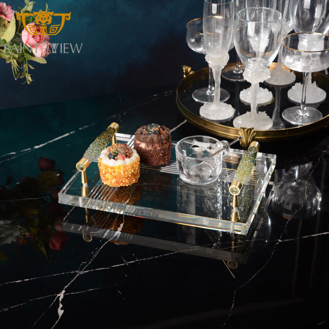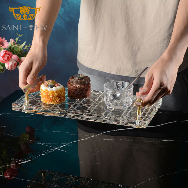 Decorative Custom Clear Crystal Food Cake Sugar Wedding Serving Tray Set Decoration with Handle