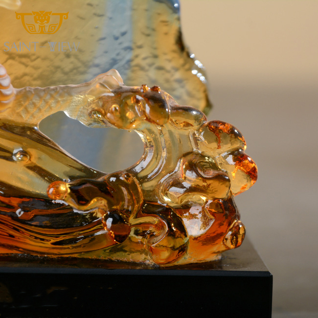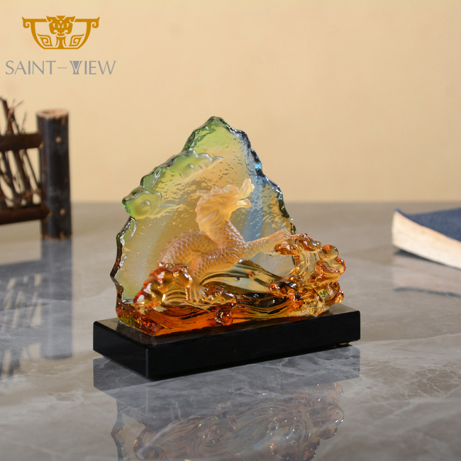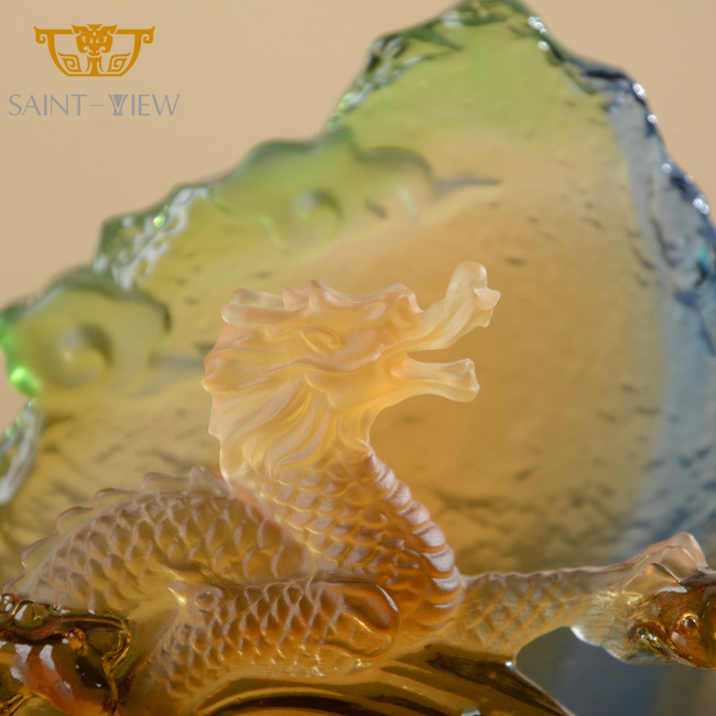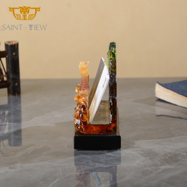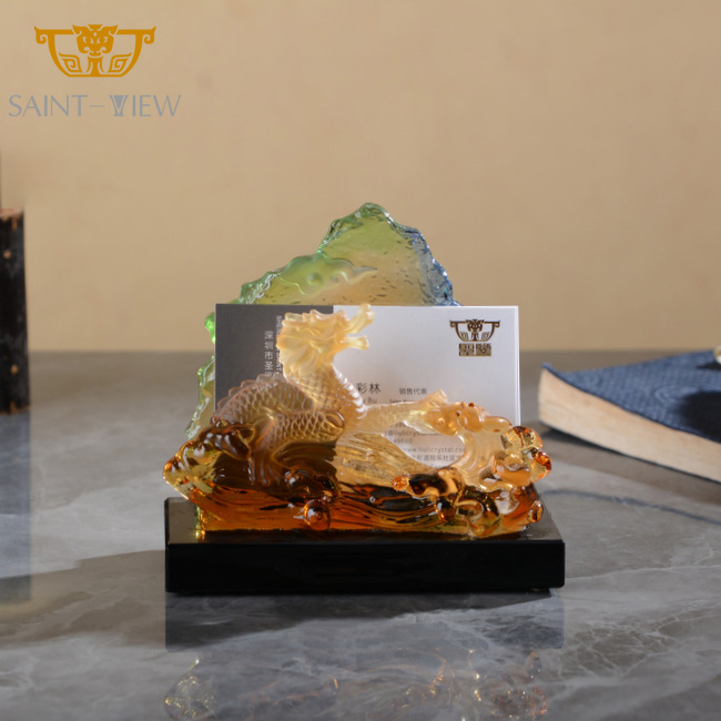 Crystal Glass Hand-made Carving Dragon Sculpture Card Holder Office Table Ornament