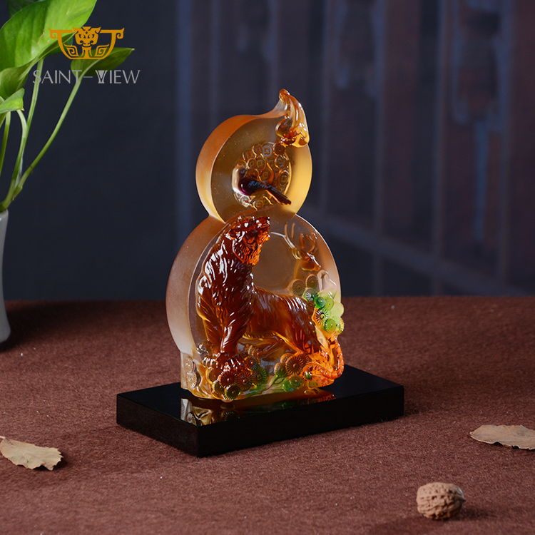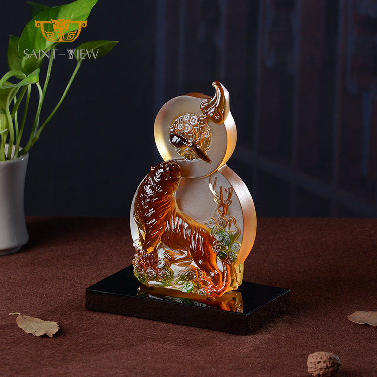 SAINT-VIEW Factory Wholesale Liuli Crystal Tiger Figurine Auspicious Home Office Decoration