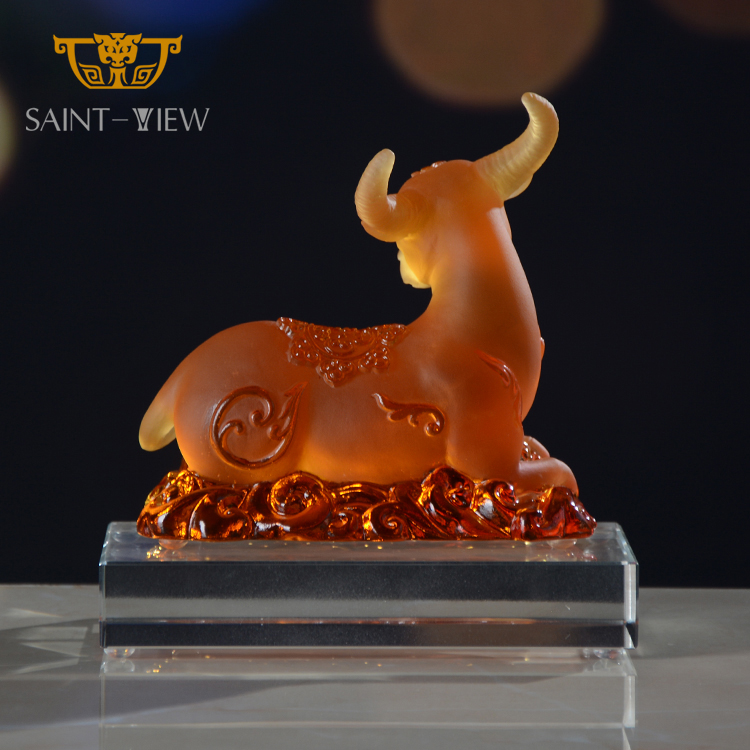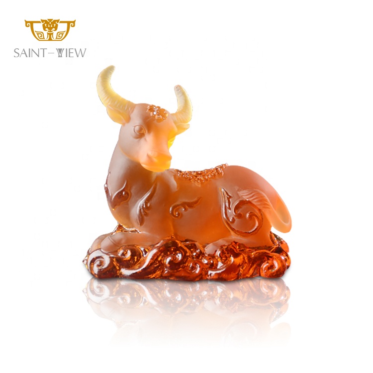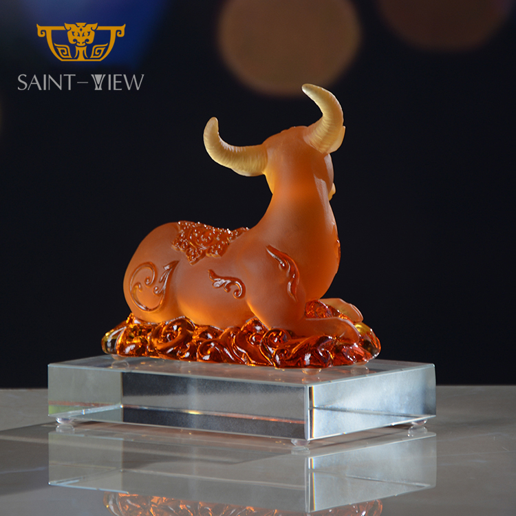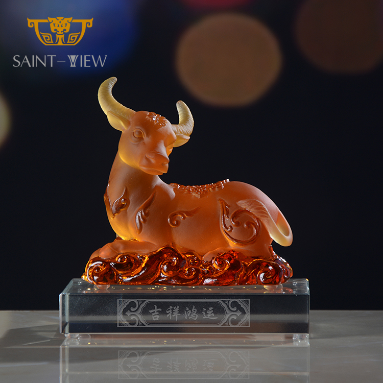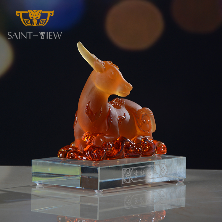 SAINT-VIEW 2021 New Design Liuli Crystal Art Ox Statue Auspicious Company Gift