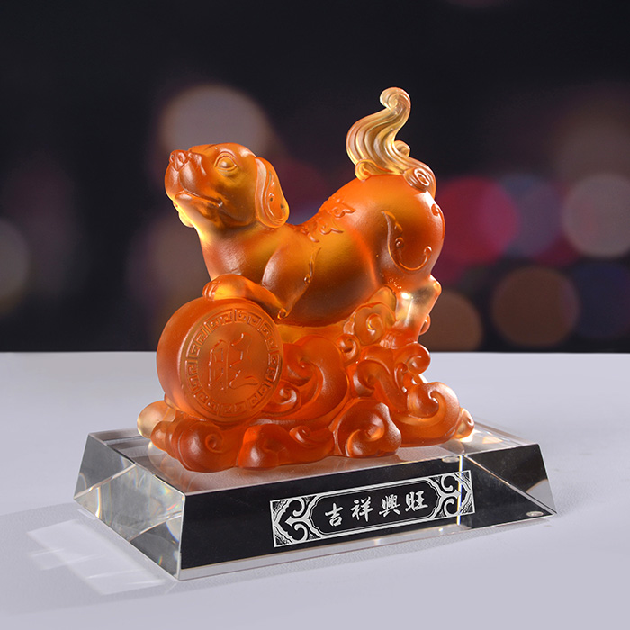 Liuli Dog Crystal Art 2018 Dog Year Business Gift Crystal Glass Art 12 Animals Sculpture