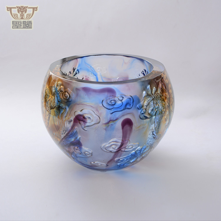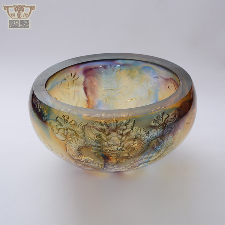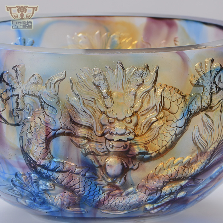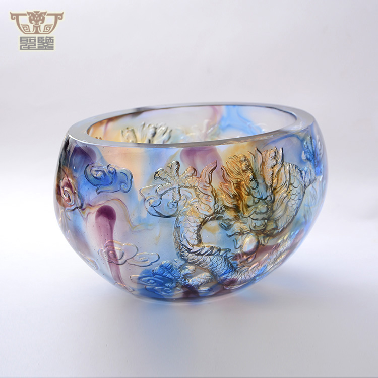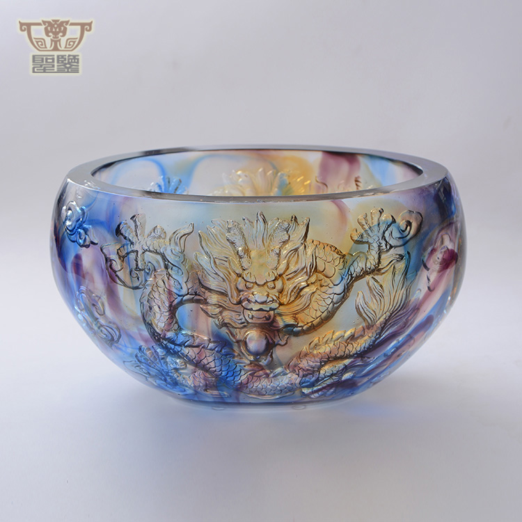 Colored Crystal Handmade Dragon Treasure Bowl Collecting Money Fengshui Decoration