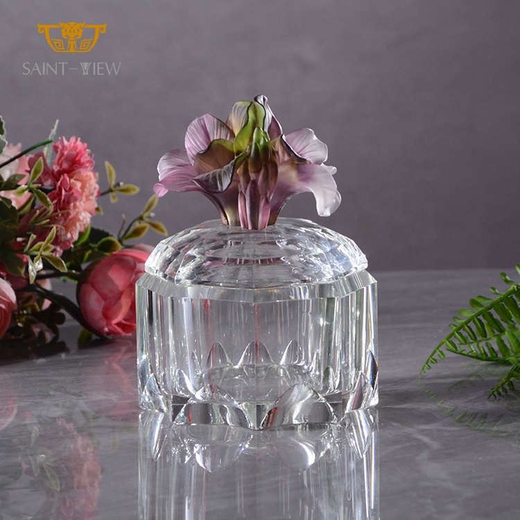 Glass Sandalwood Container Flower Lid Jewelry Sundries Box Clear Crystal 2022 New Creation Instagram Novelty Glass Jar