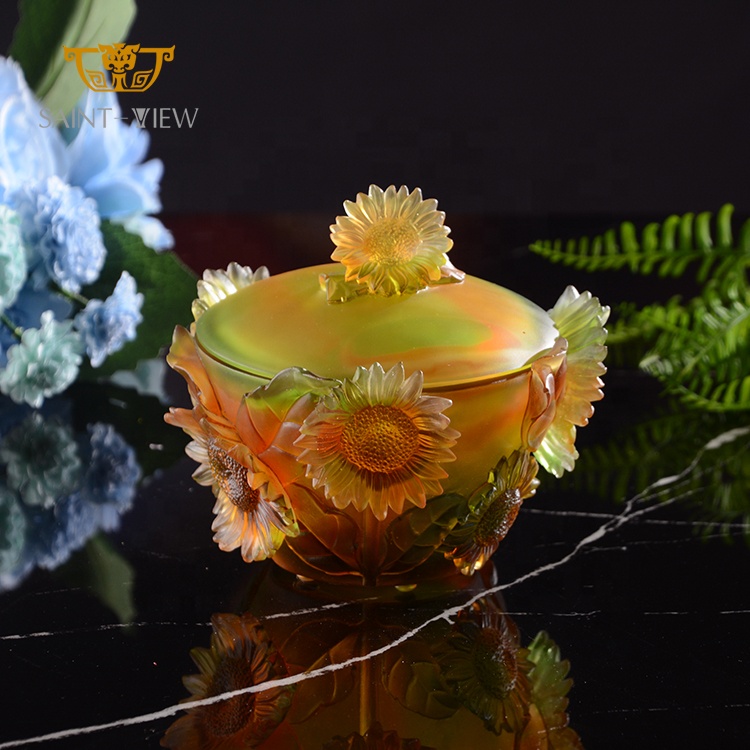 2021 Best Selling Crystal Glass Sunflower Sugar Jar Desk Ornaments Office Decoration