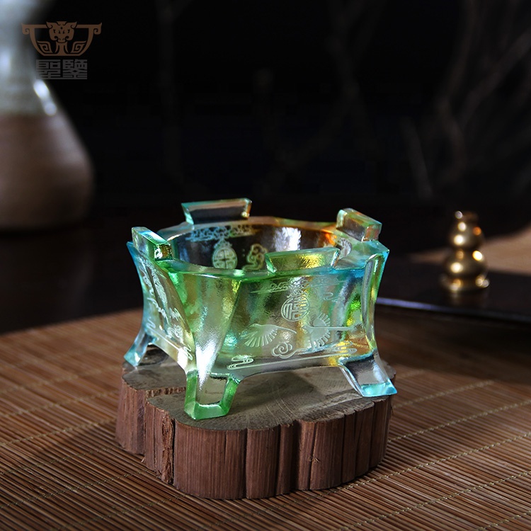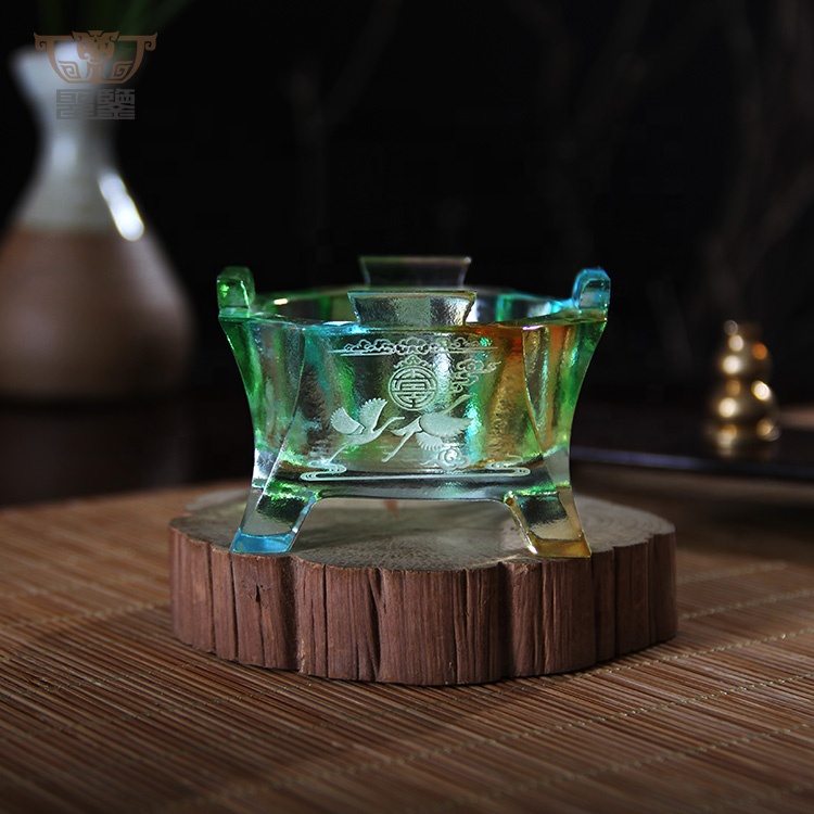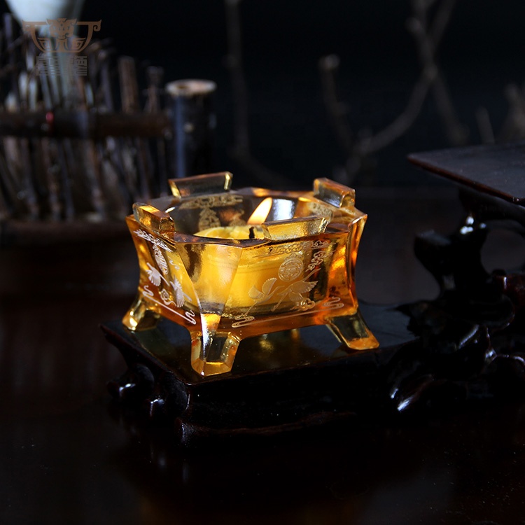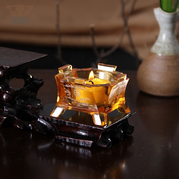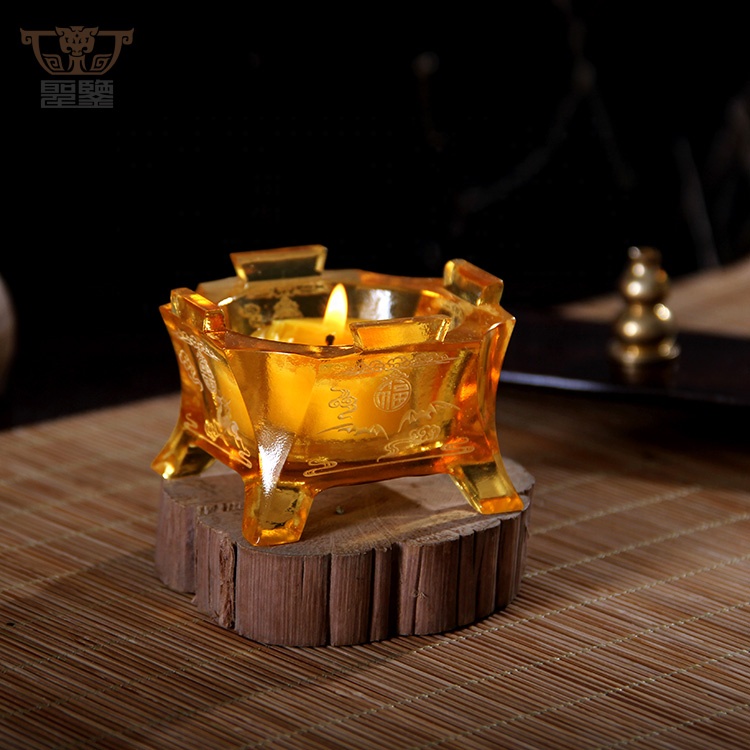 Full Blessing Crystal Glass Liuli Craft Religious Worship Candleholder Colored Glaze Buddhism Votive Candle Holder