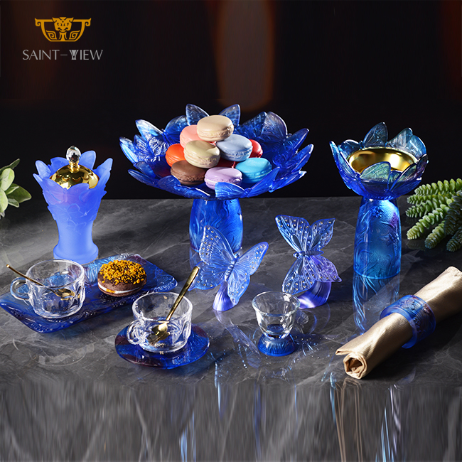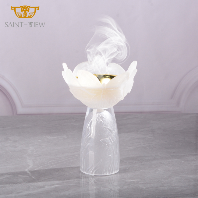 Manufacturer H20cm H14cm Crystal Inside Matt Carving Design Original Incense Burner Set