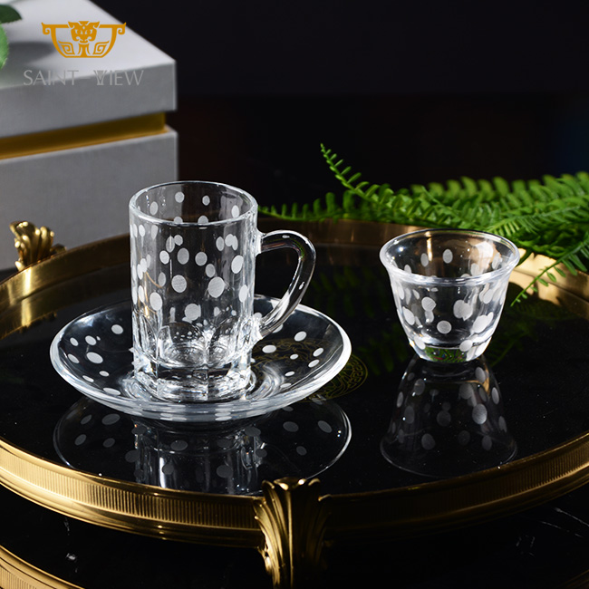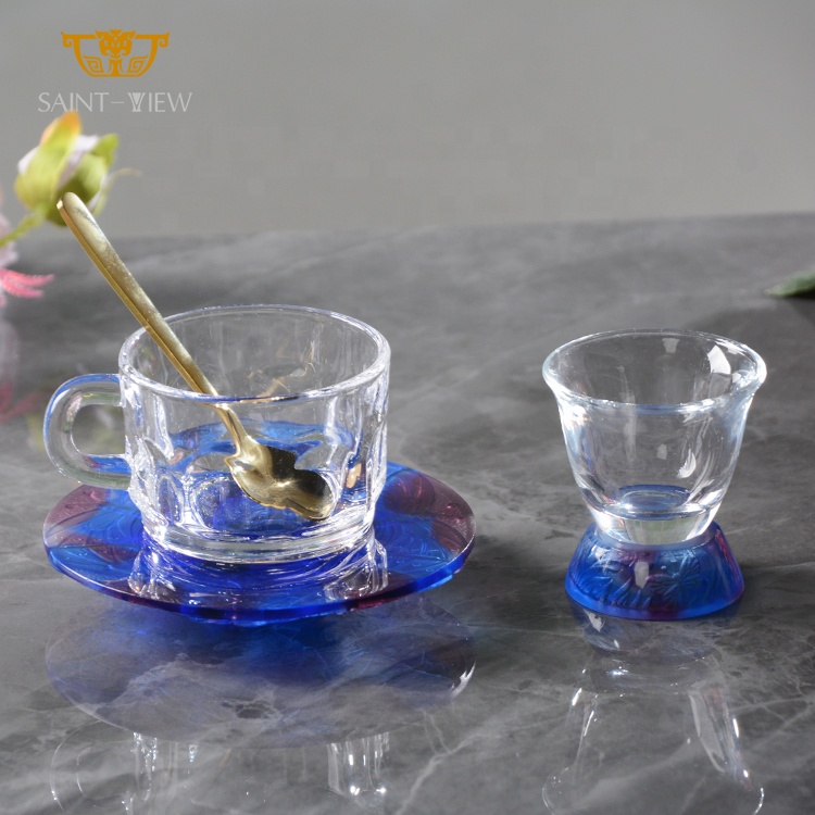 Wholesale Mini Turkish Coffee Milk Tea Luxury Drinkawre Glass Customization Home Rose Arabic Coffee Cup Set Set