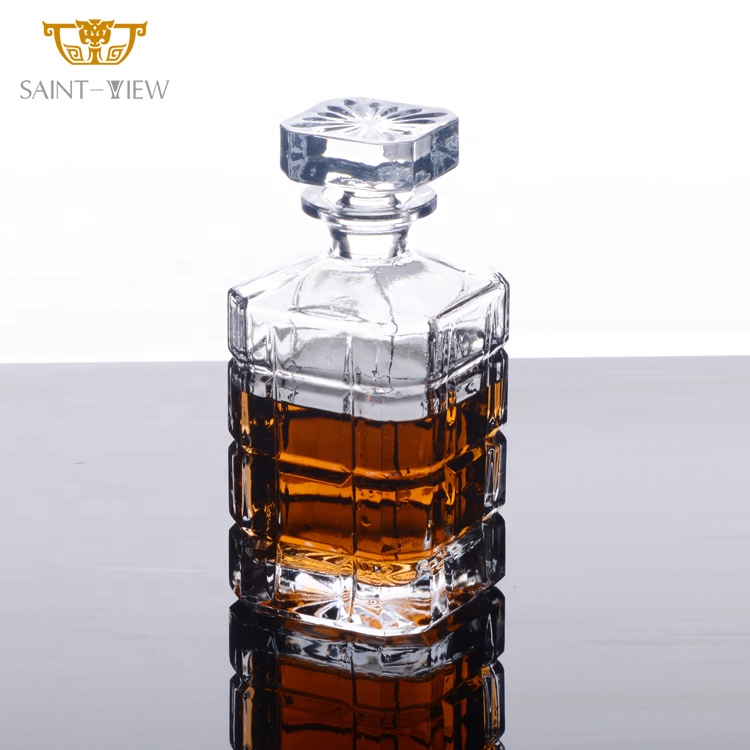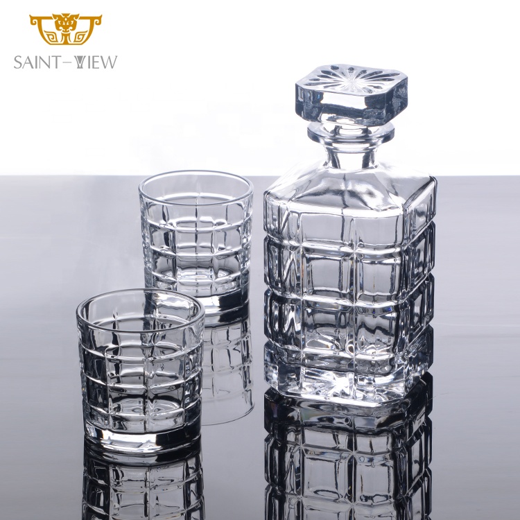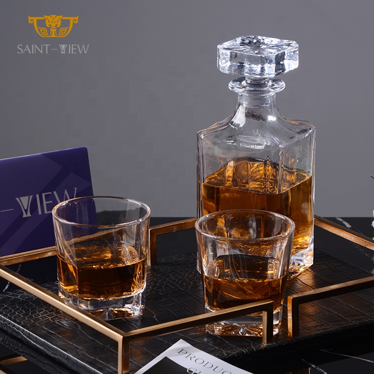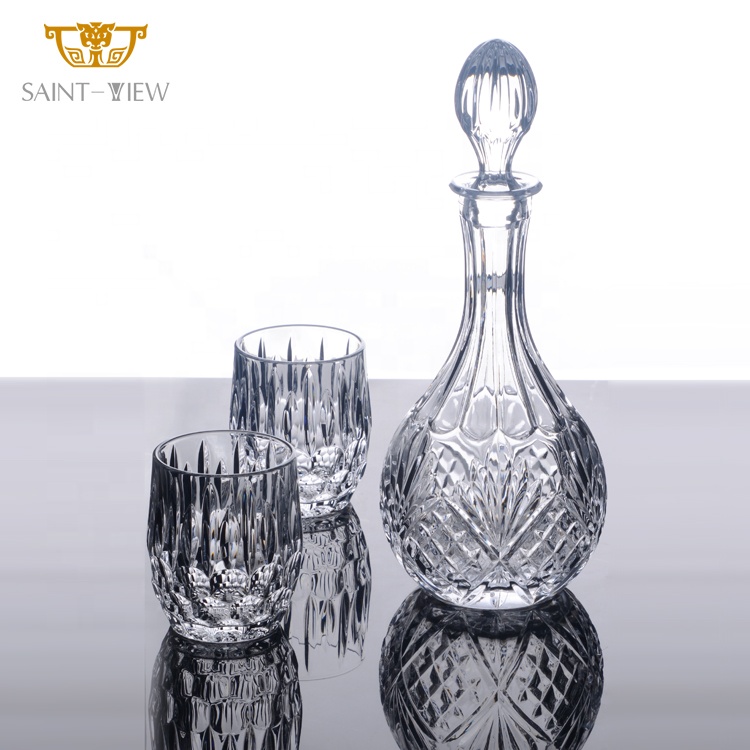 Crystal Wine Liquor Tequila Vodka Gin Whisky Brandy Bottle 750ml Glass Cup With Custom Stopper Gift Set