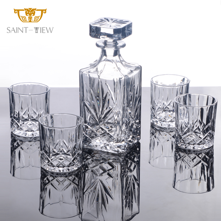 Liquor Wine Whisky Bottles Bottle With Glass Cup Set Square Glasses Wine Cabinet Decor Gift Box Custom Logo