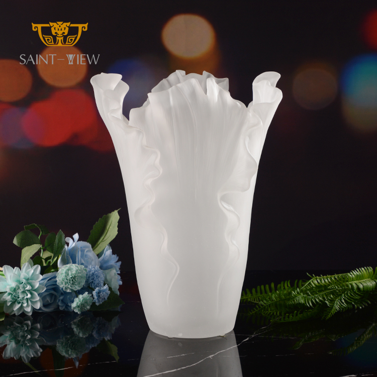 H40cm Giant Size Crystal Glass Vase Expensive Frosted Glass Tulip Flower Classic Modern Home Decor