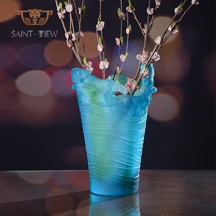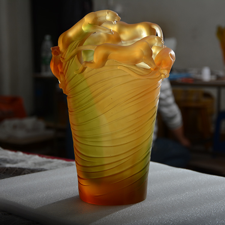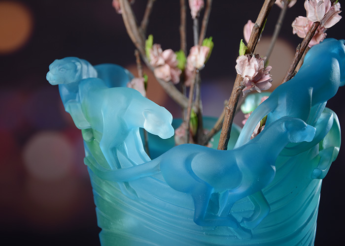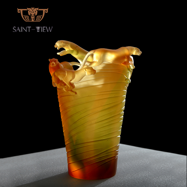 Liuli Crystal Glass Wildlife Animal Cheetah Nature Miracinonyx Leopard Panther Martini Vase H30cm