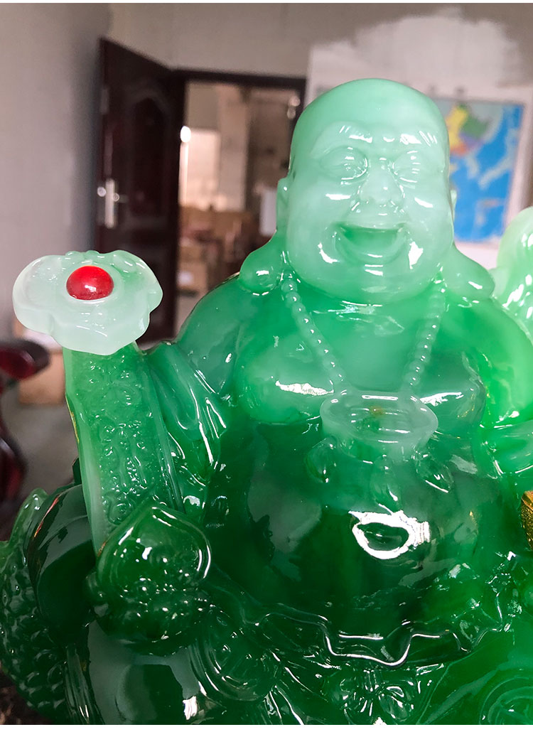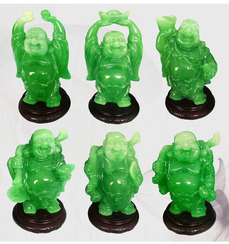 Hot Casting Polyresin Carved Green Maitreya Statues Lying Laughing Pocket Buddha Office Desktop Blessing Art
