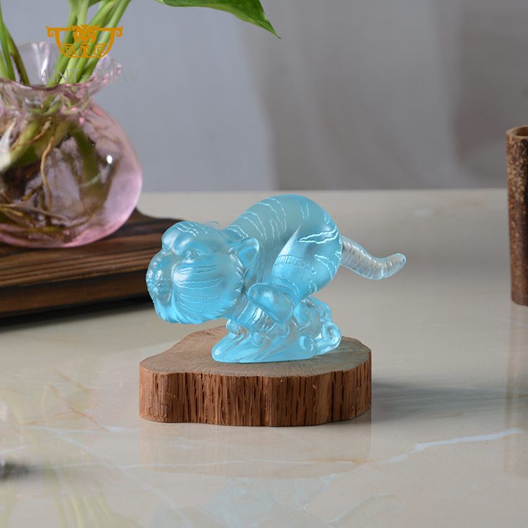 SAINT-VIEW Business Souvenir Custom LOGO Gift High Grade Liuli Statue Tiger Interior Decoration