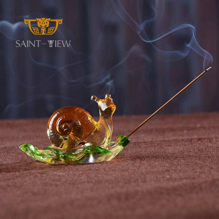 Snail Sculpture Animal Artwork Incense Inserted Asian Zen Clear Design Table Decoration