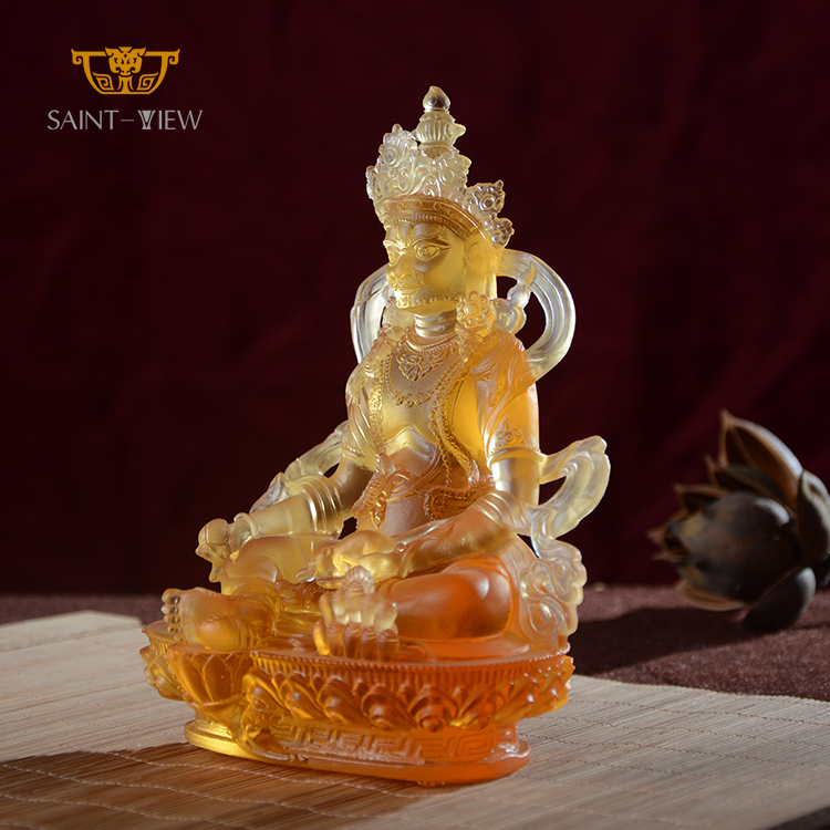 India Yellow Jambhala Statues Crystal Buddhist Sculptures Handmade Buddha Effigy Wholesale