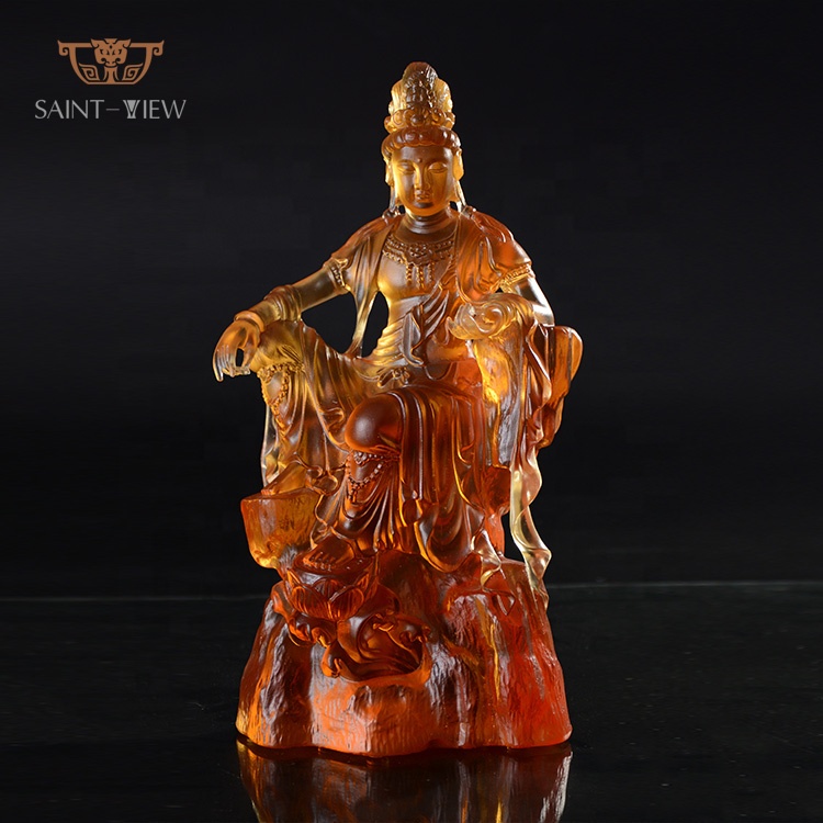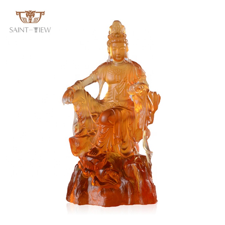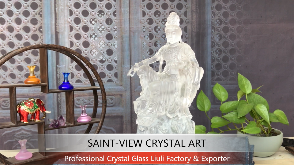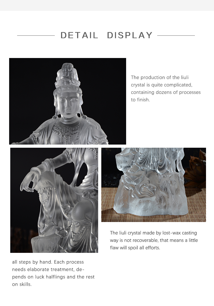 High Quality Tanwan Liuli Crystal Kwan Yin Bodhisattva Religious Buddha Statue