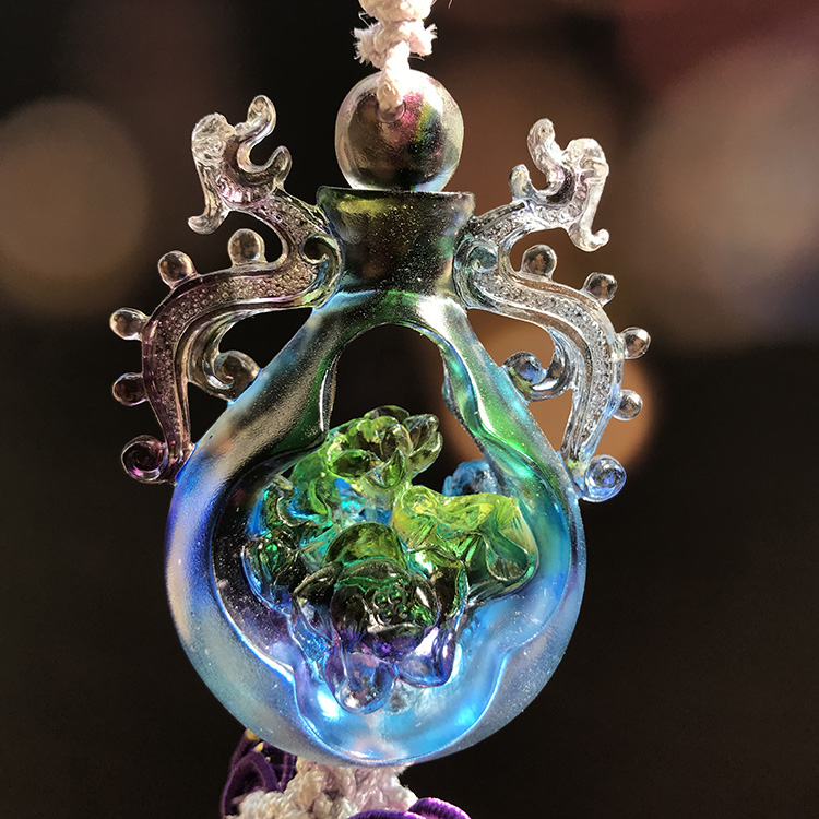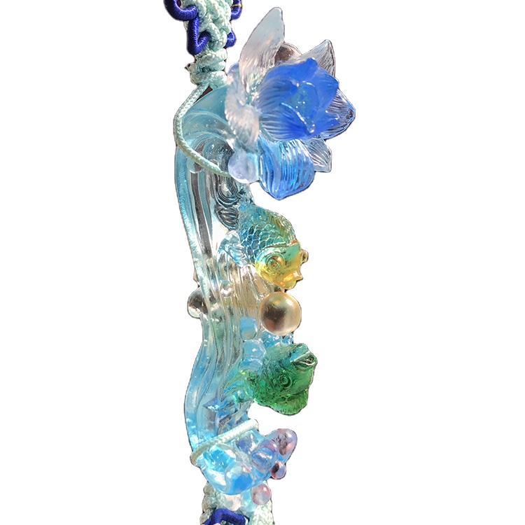 Fengshui Gift Liuli Crystal Ruyi Lotus Talisman Car Hanging Charm Pendant