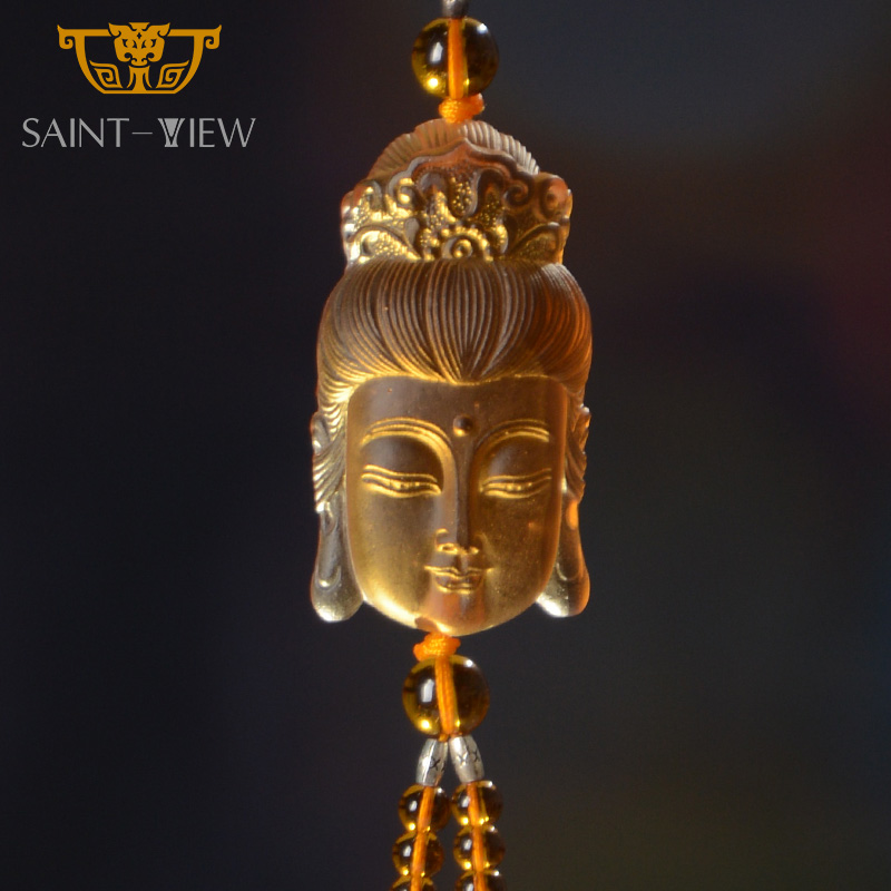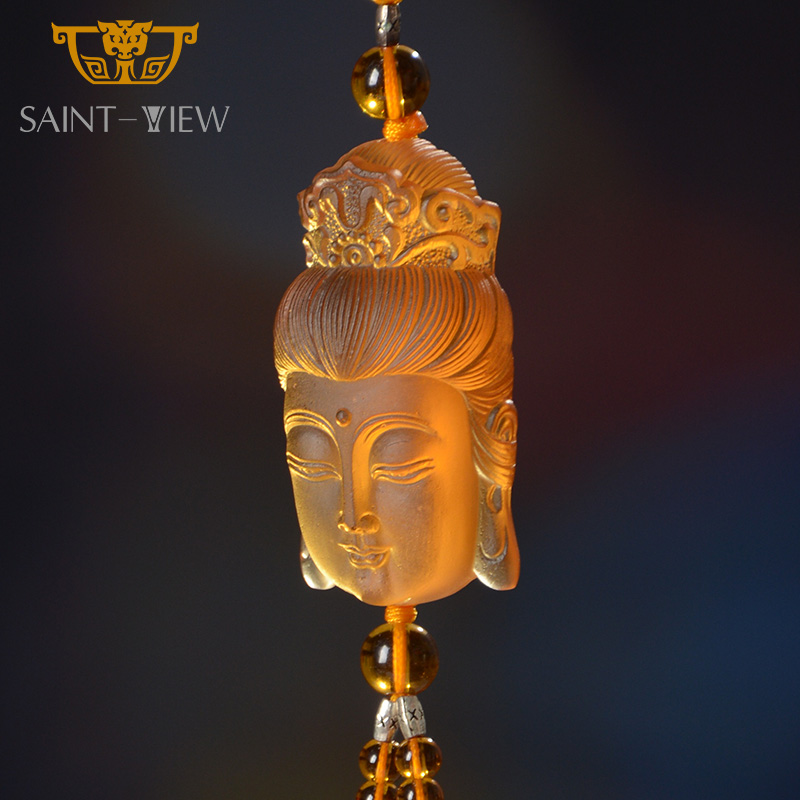 Handmade Crystal Religious Kwan Yin Buddha Head Car Hanging Pendant