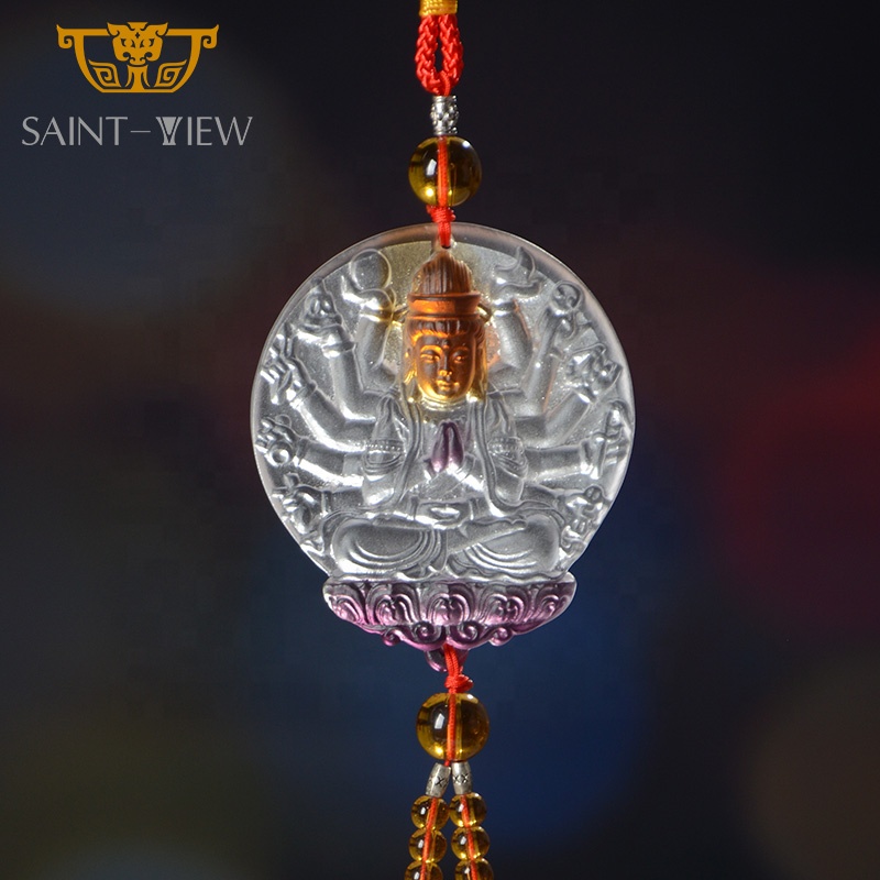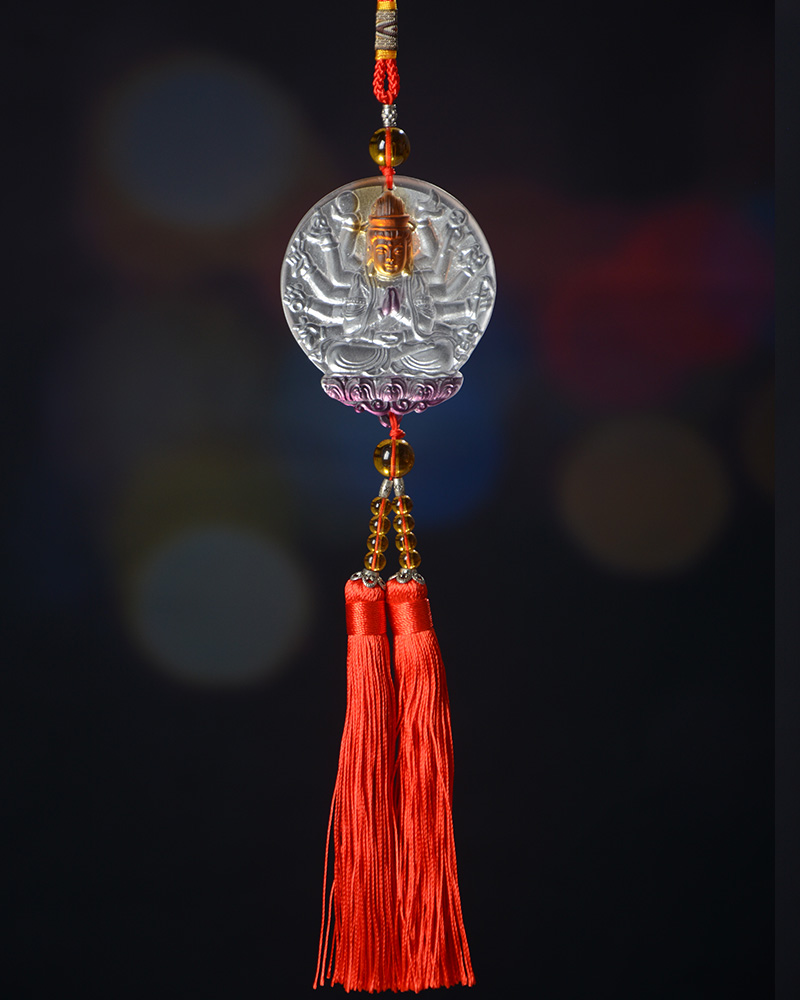 Lead Crystal Four-Armed Kwan Yin Bodhisattva Car Rear Mirror Hanging Ornament