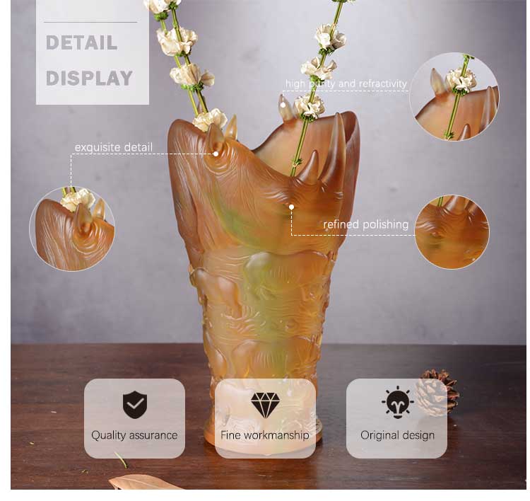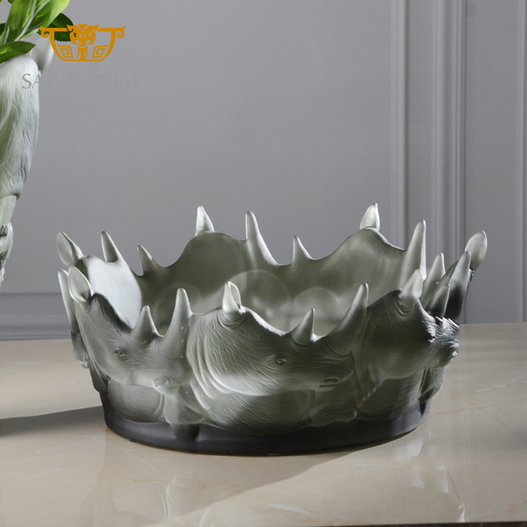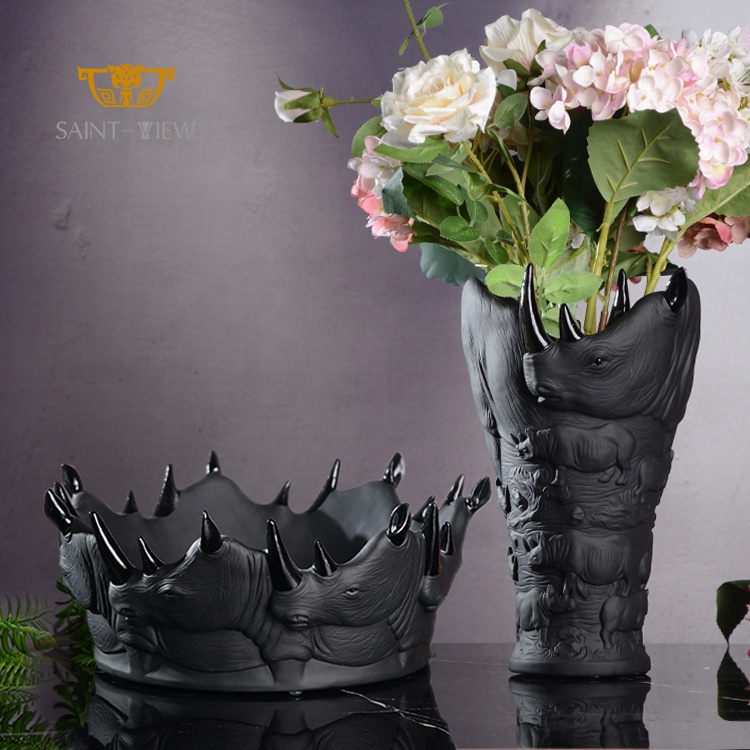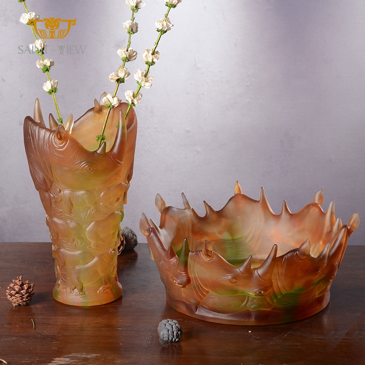SAINT-VIEW Primitive Animal Style Rhinoceros Crystal Glass Home Interior Decor design Tall Vase