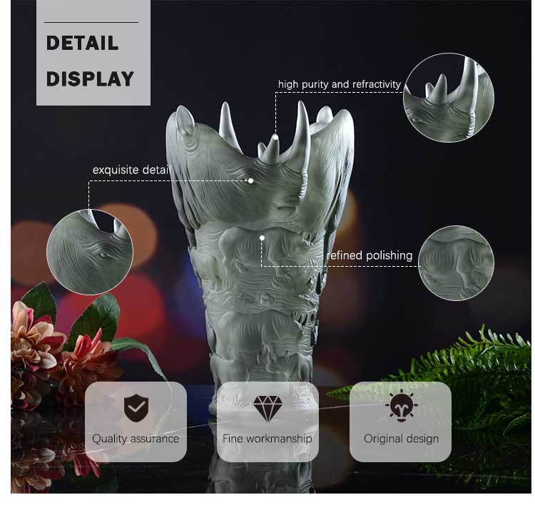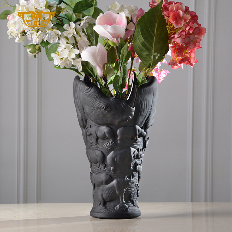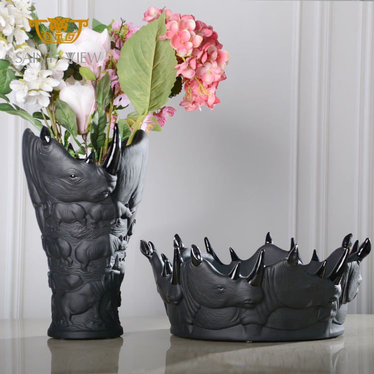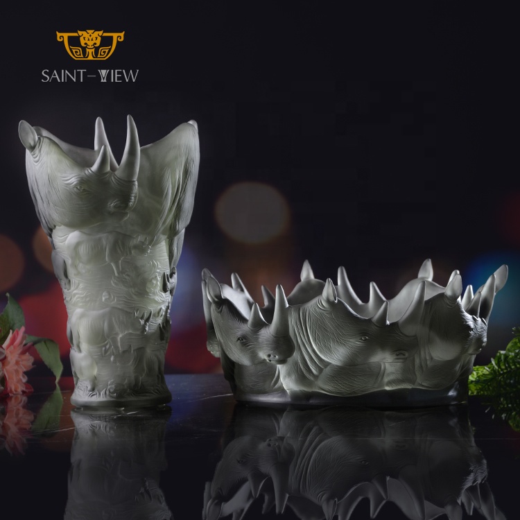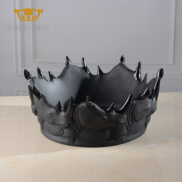 Manufacturers Wholesale 2023 Crystal New Folkcrafts Black Big Artwork Vase Rhinoceros Design Bowl