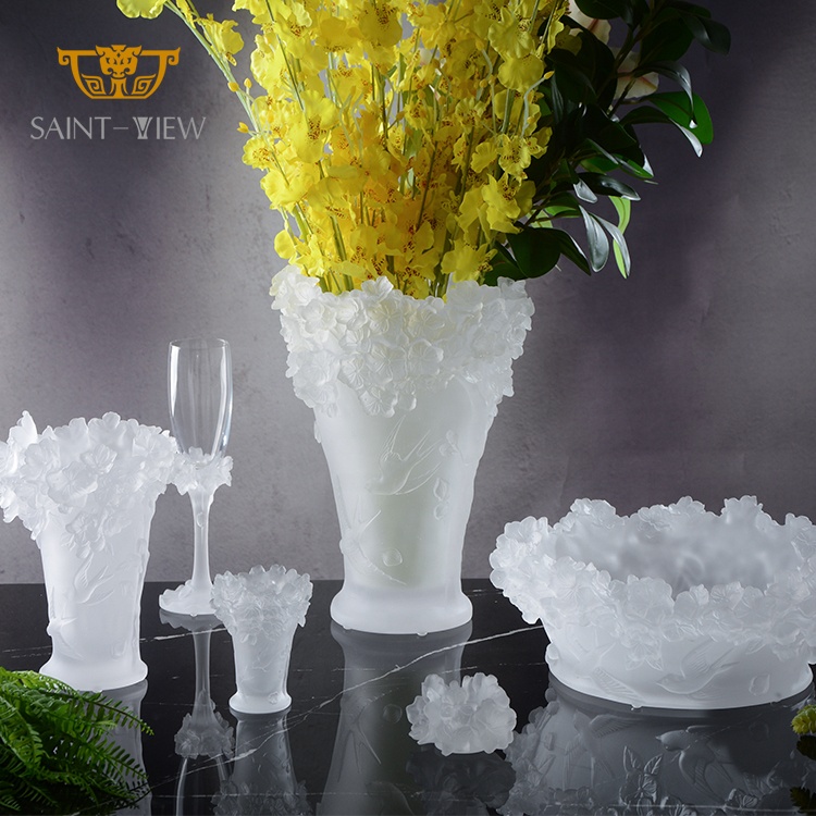 New Design ramadan Eid Decorations Luxury Crystal Glass Sakura Flower Vase for Wedding Centrepiece